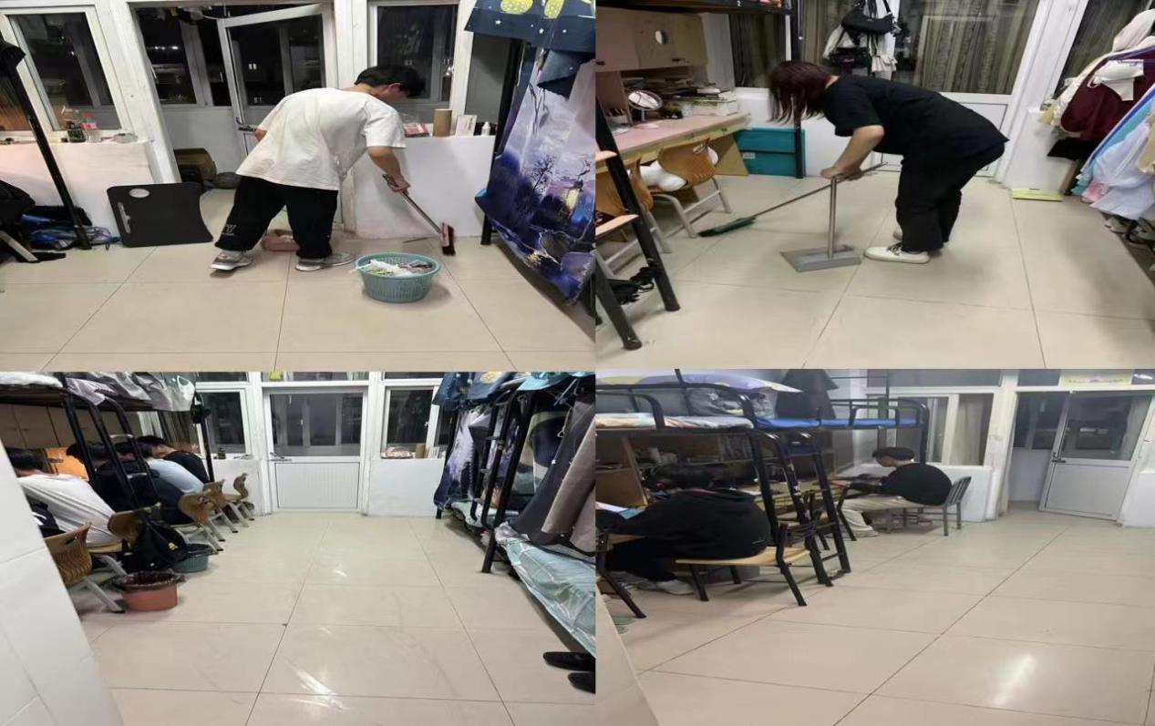 在学院开展“星星闪耀宿舍”建设工程活动中,宿舍长们率先垂范,其余同学积极跟上,纷纷投入宿舍环境整治的劳动中。凌乱的桌面被收拾得井井有条了。面池边、卫生间、阳台三个重点难点区域看到舍长带头忙碌的身影。曾经东一只西一只的鞋子,如今在床底下排列得整齐有序。宿舍窗外花圃中的纸屑及杂物不知被谁捡走了。宿舍的干净整洁由最初的“一刹那”开始进入正常化状态。一个个安全、和谐、崭新、美丽的宿舍新形象正在宿舍成员共同努力下,呼之欲出。争创“五星”、争创“样板宿舍”、争创“党员示范宿舍”,成了每个宿舍的努力目标。